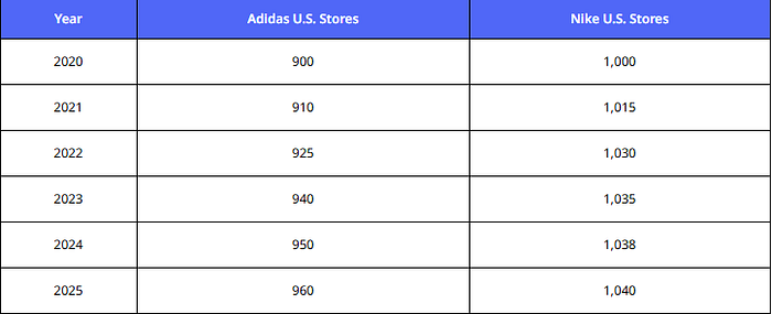 As of 2025, Nike operates around 1,040 U.S. stores, while Adidas manages about 960. However, Adidas focuses on urban-centric “flagship” stores, while Nike’s reach extends into suburban and outlet malls, broadening its shopper base.